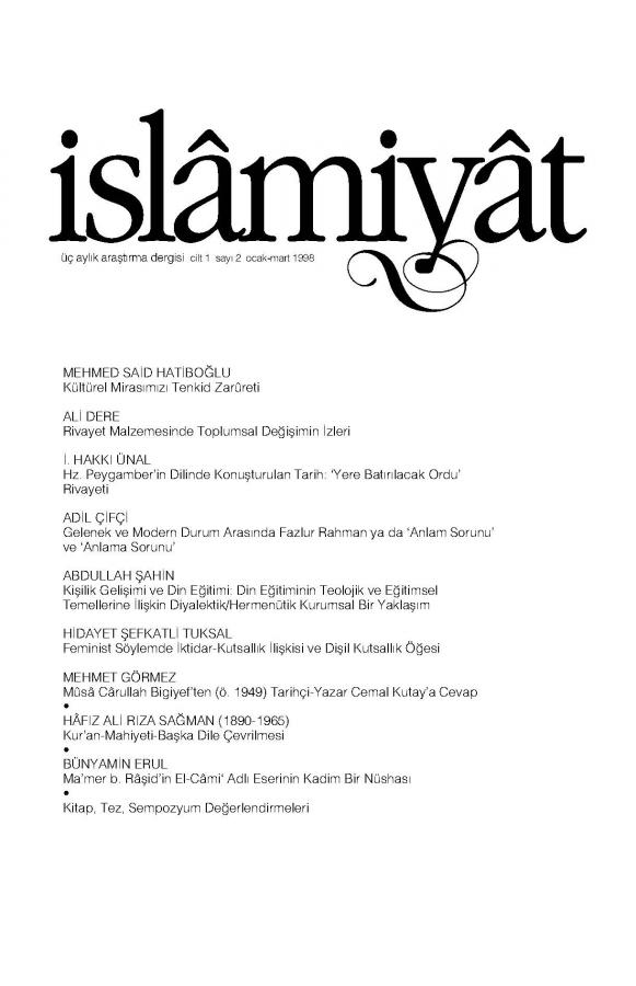 İSLAMİYAT (Kültürel Mirasımızı Tenkid Zarureti)